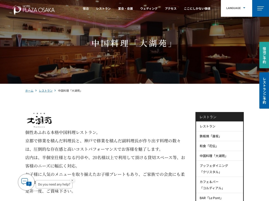 詳細は大阪 中華の名店「大湖苑」の公式ページをご覧ください。